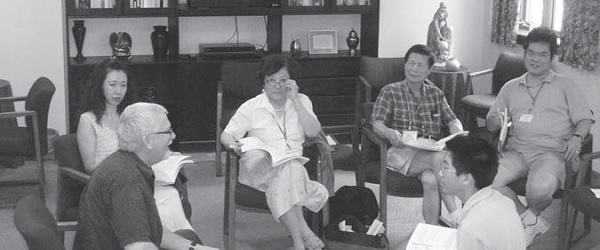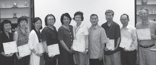 ▲Pastor Su Wen’an (second from right), who is also a teacher of writing, interviewing and editing courses, took the class taught by teacher Chen Huiwan (fifth from left) - "Stories of Faith Can Be Written So Wonderfully", making him a student for the first time in fourteen years of teaching at KRC , received the first certificate of completion.
