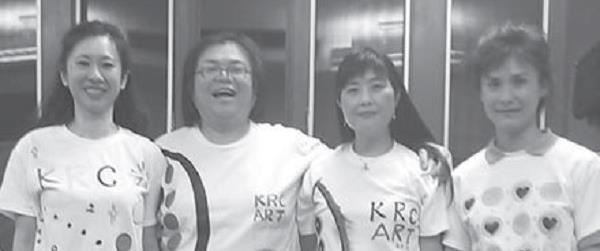 ▲Teacher Zhou Lanhui (second from left) leads the students of the Art Appreciation and Creation Camp, wearing their own hand-painted T-shirt to show their views and ideas on beauty.