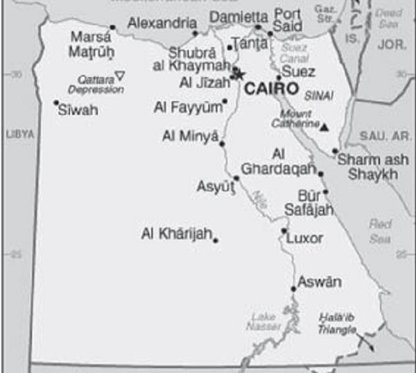 ▲Egypt simplified map source: U.S. Central Intelligence Agency https://www.cia.gov/library/publications/the-world-factbook/geos/eg.html