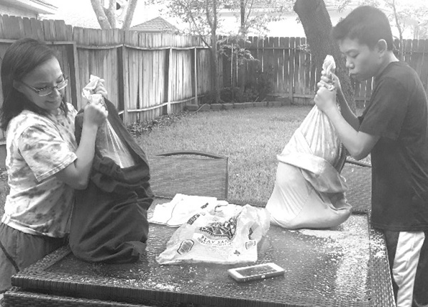 On August 24, I followed my husband's instructions to prepare for the coming hurricane and store drinking water and food. However, I felt a little disapproving because I had never experienced the power of a hurricane. When my husband came back from get off work, he went to buy sandbags, tarps, waterproof tape, etc. with great fanfare, and worked with the children to build defense projects outside the house to protect the home.