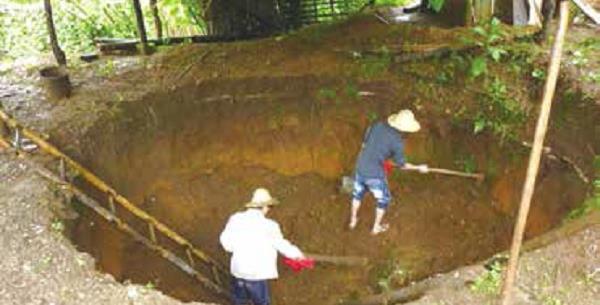 ▲Villagers worked together to dig a water cellar.