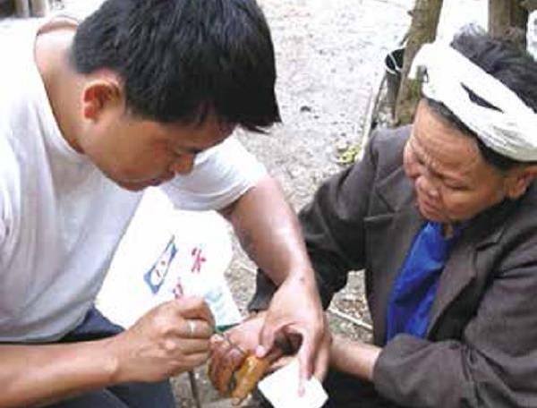 ▲Colleagues from "Chuan Ren" carefully examine patients with Han disease for ulcers.