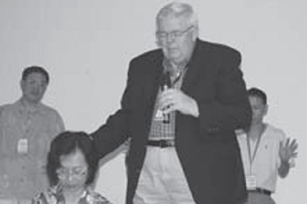 ▲John Van Valin, the honorary pastor of the First Chinese Methodist Church in Indianapolis, laid hands on Sister Cai Lirong and blessed her.