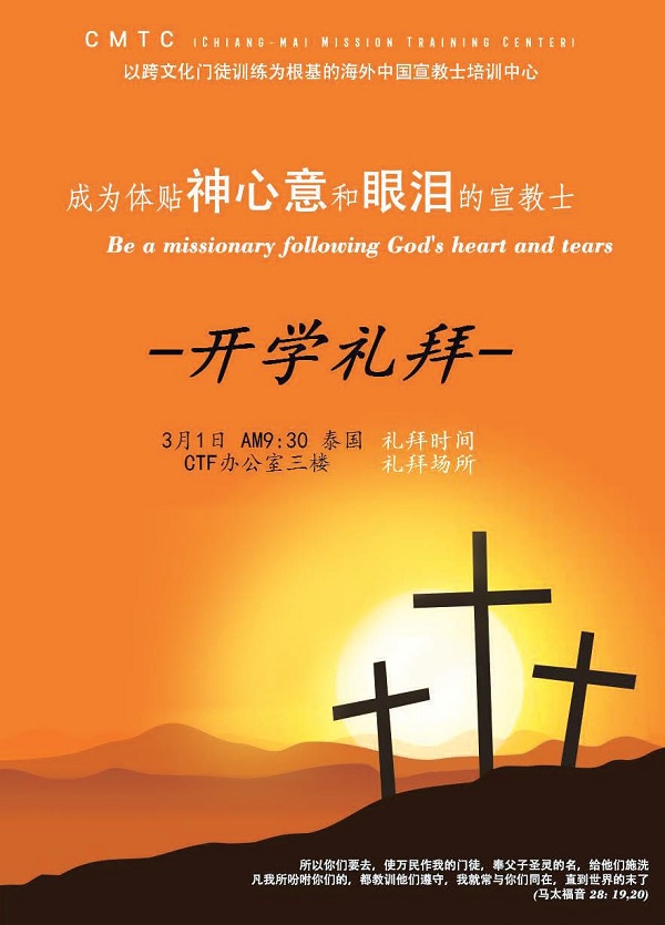 At the age of 33, he was sent to Xi'an, China, to learn language and culture. Five years later, he left China and came to Thailand due to political reasons. The burden God gave him was to train young Chinese missionaries. During his several years in China, Wang Zhengzhong observed that China has a large population and although Christians are growing rapidly, the training of missionaries, especially cross-cultural missionary work, is still insufficient. With the vision of "from missionary China to missionary China", he came to Thailand and established CMTC, a missionary training center focusing on cross-cultural discipleship training.