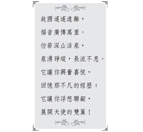 她來到我面前,忘情地擁抱了我,幸福地對我說:「太奇妙了,我喝了這活水,得到新生命,渾身是力量。耶穌對我們說,人若喝我所賜的水,就永遠不渴。我所賜的水要在他裡頭成為泉源,直湧到永生。」這一番話,對我內心震動很大。