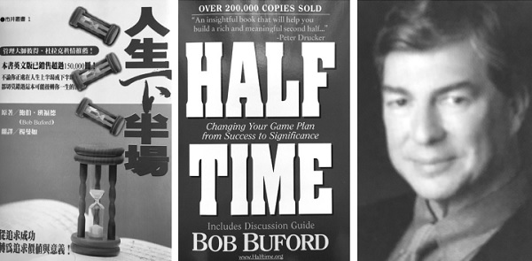 1995年Bob Buford 出版了Half Time一書,立即大受歡迎;中文版翻譯為《人生下半場》(臺北雅歌出版社),也十分暢銷。當年大家正流行討論中年危機(Midlife Crisis),這本書對我的幫助很大。當時我也正在經歷人生的高原期,亟思生命的突破更新。Bob Buford以親身體驗說明了一個中年男子的心路歷程,對我而言相當貼切,深受感動。他的人生上半場十分順遂,家庭幸福,事業成功,人人稱羨。當時他正在積極培養他的獨生子接續他的家族企業,忽然間他的獨生子意外死亡,這猶如晴天霹靂,他的整個接班計畫頓時落空。他痛定思痛,重新思考人生的意義,把目光從追求成功(Success),轉向追求人生的意義(Significance)。