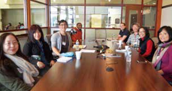 ▲本次營會講員梅國蘋牧師(右二)與李美娟牧師(左二)參加英文組的討論。