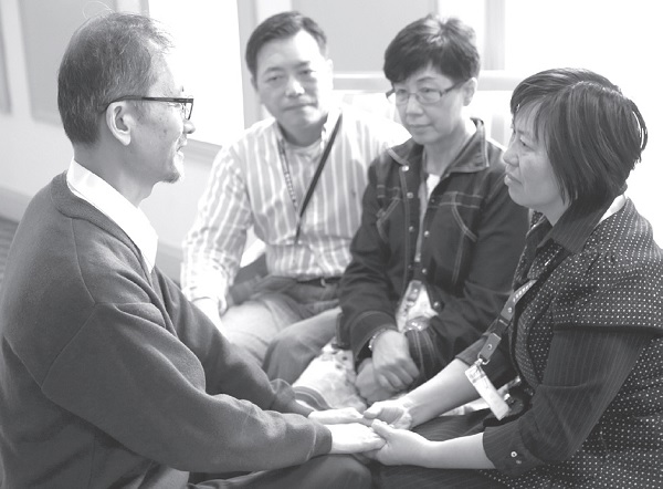 ▲作者和先生在恩愛夫妻營中操練「清垃圾」(負面情緒表達)。