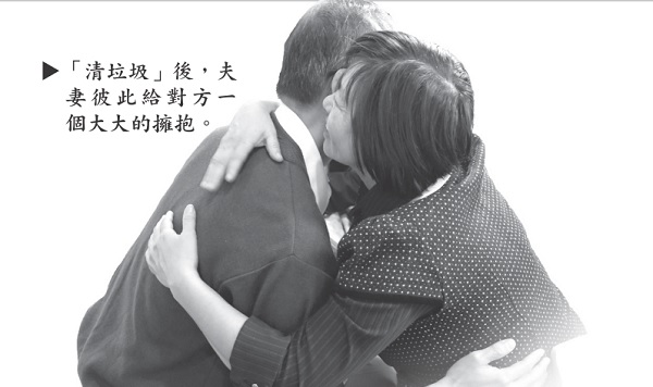 在眾多的夫妻關係課程中,有兩門必修課:「存款」與「清垃圾」。將夫妻關係用銀行帳戶作比喻,「存款」,是對配偶用正面欣賞與肯定的言語;「提款」,是對配偶用負面、指責或不滿的言語。「清垃圾」,是操練負面情緒的表達。