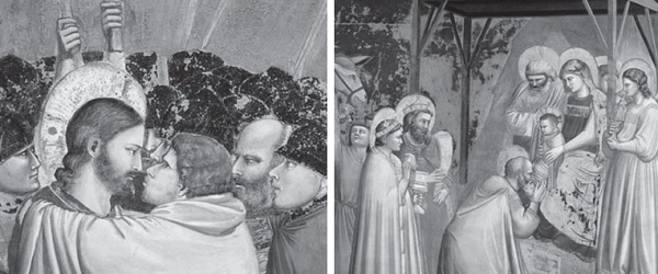 ▲Giotto’s masterpieces: Jesus and Judas (left), The Birth of the Holy Child (right).