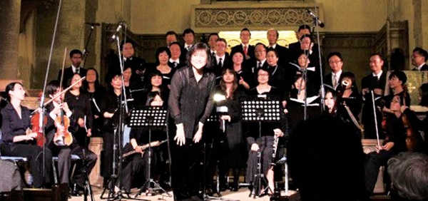 (下)作者於波士頓指揮蕭泰然的清唱劇《浪子》,與團員共同演繹出感動人心的樂章。
