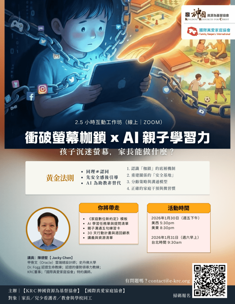 This online workshop invites parents to slow down and learn how to guide their children towards healthier technology use, starting with understanding, boundaries, and relationships. We will share practical guidance methods to help children gradually build self-discipline, focus, and a sense of security, rather than getting caught in a tug-of-war and conflict.